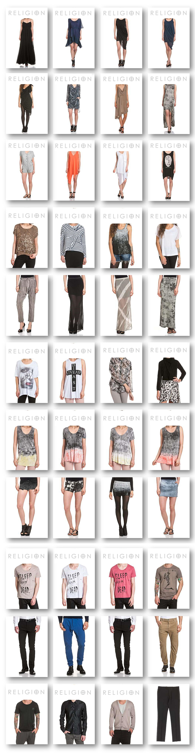 RELIGION hat einen ulimativen Style, ungewöhnlich, auffällig und phantasievoll. Der Posten beeinhaltet zum größten Teil Blusen, Hosen, Hosenanzüge, Jacken, Kleider, Röcke, T-Shirts, Top's und Overalls für Damen sowie Hemden, Hosen, T-Shirts und Cardigans für Herren in verschiedenen Modellen, Farben und Größen.